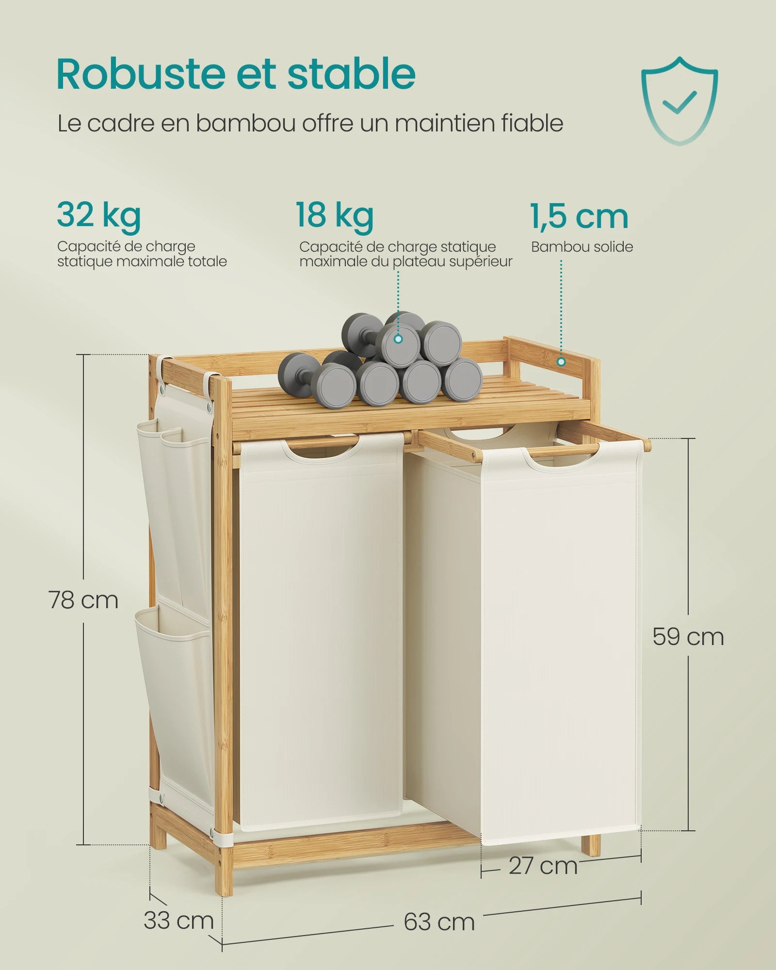 - Dimensions de chaque panier : 27 x 31 x 59 cm (L x l x H).