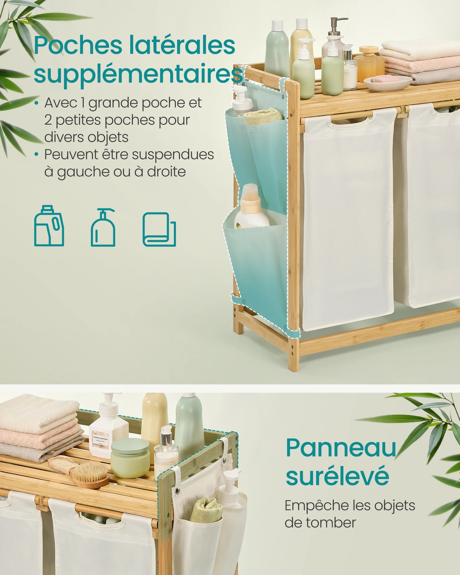 - Matériaux : structure en bambou naturel et sacs en tissu Oxford résistants.
